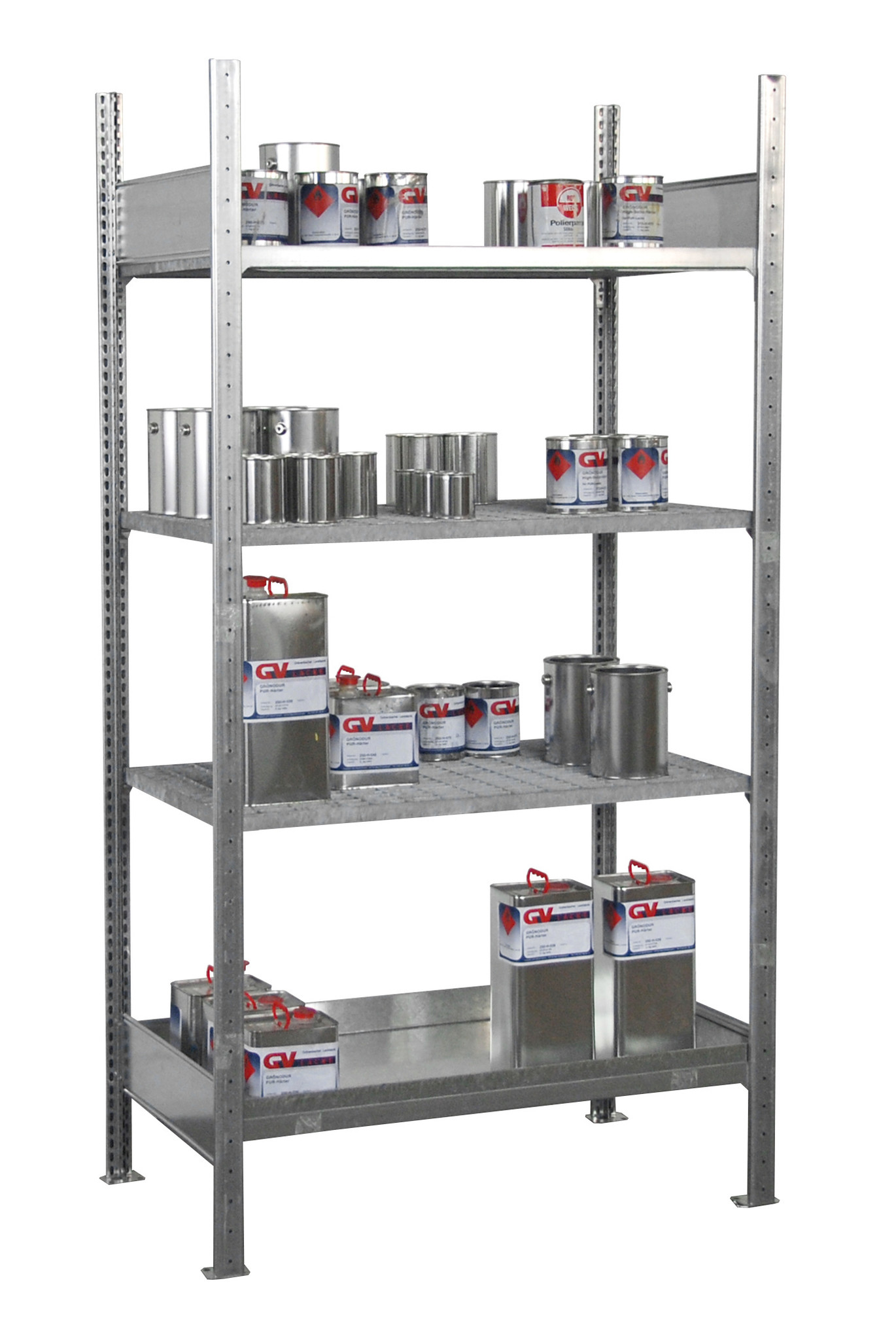 - Basisrek met 4 vakniveaus (3 vuurverzinkte roosterbodems, 1 verzinkte opvangbak)