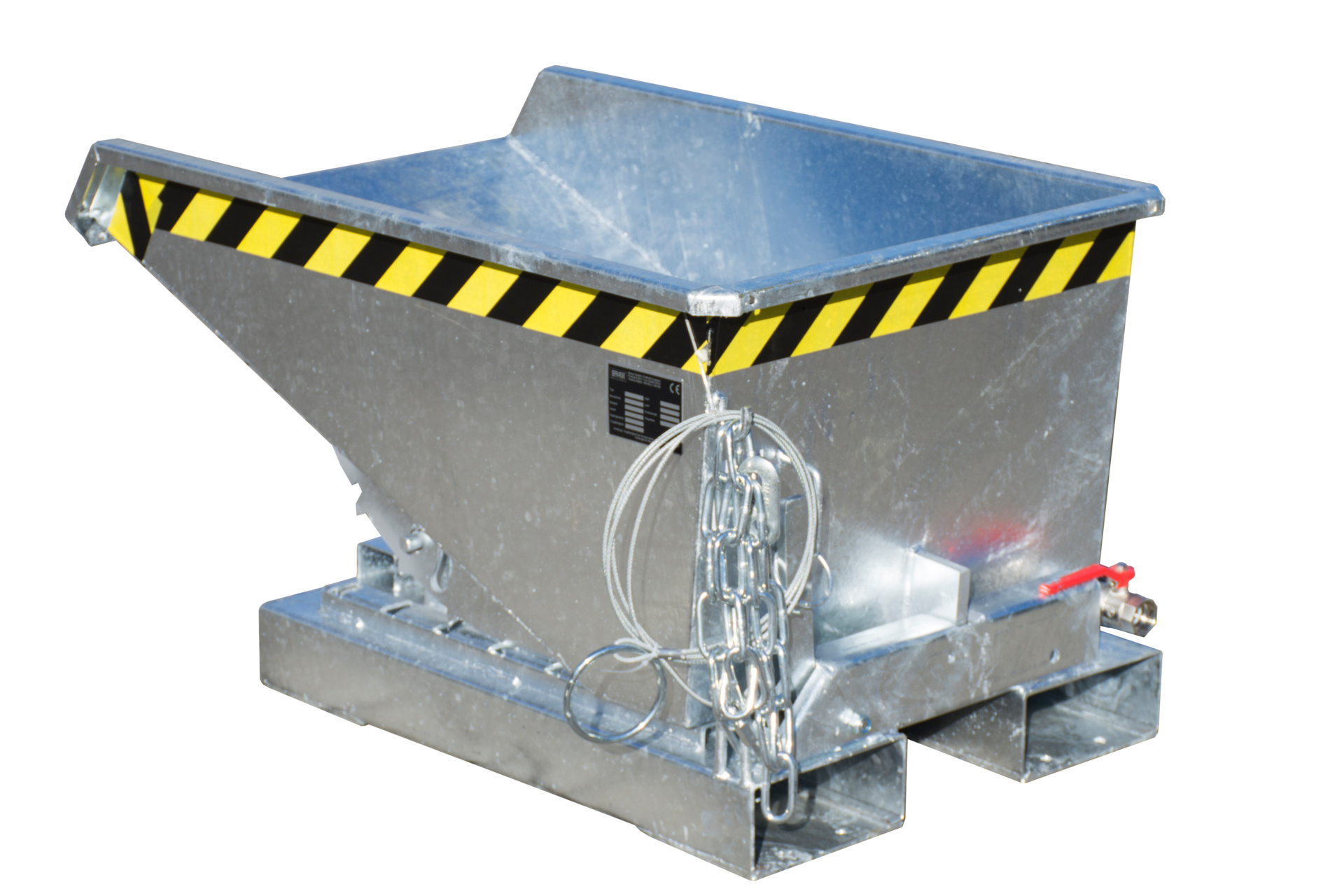 Kiepcontainer met lage bouwhoogte en afrolmechanisme