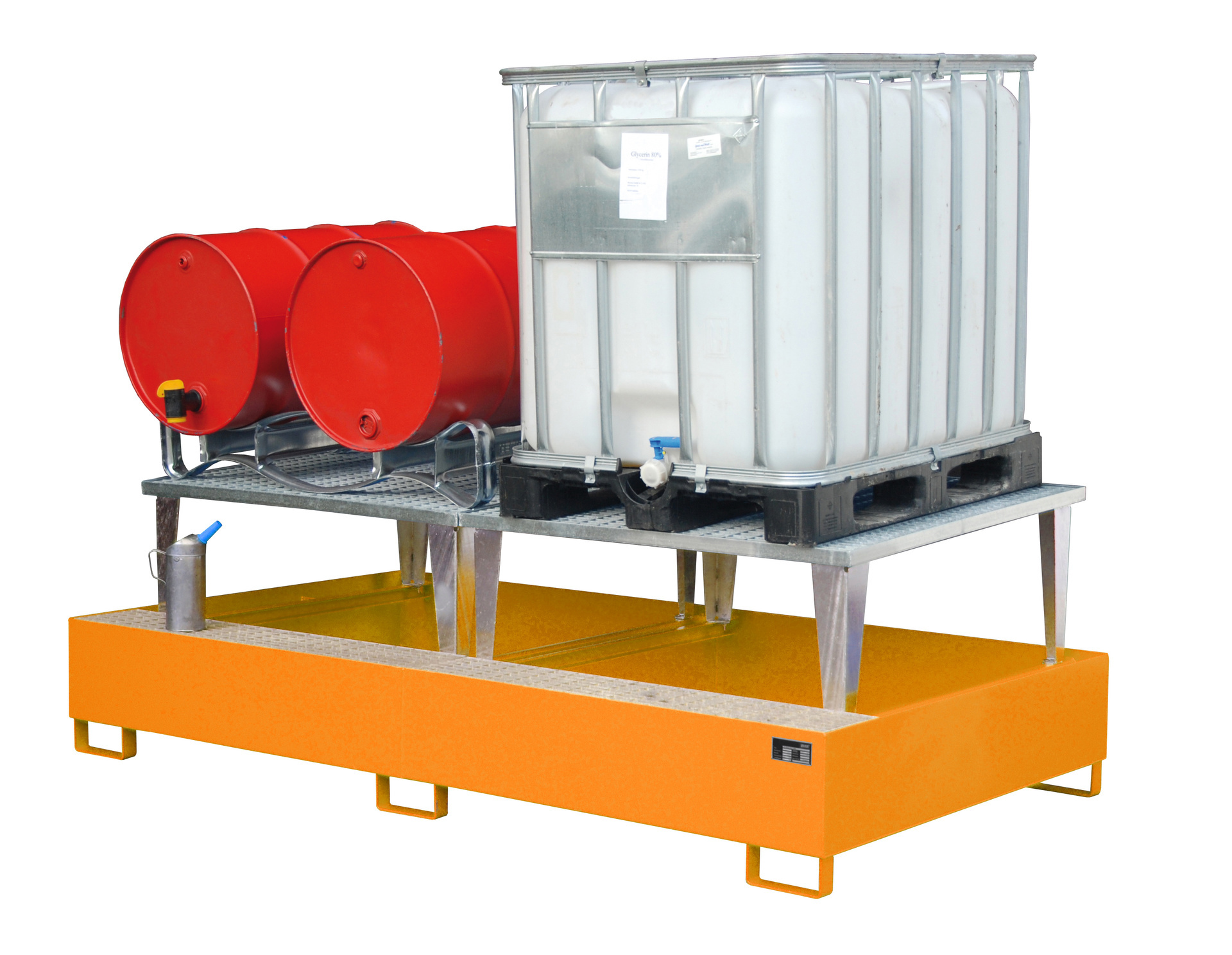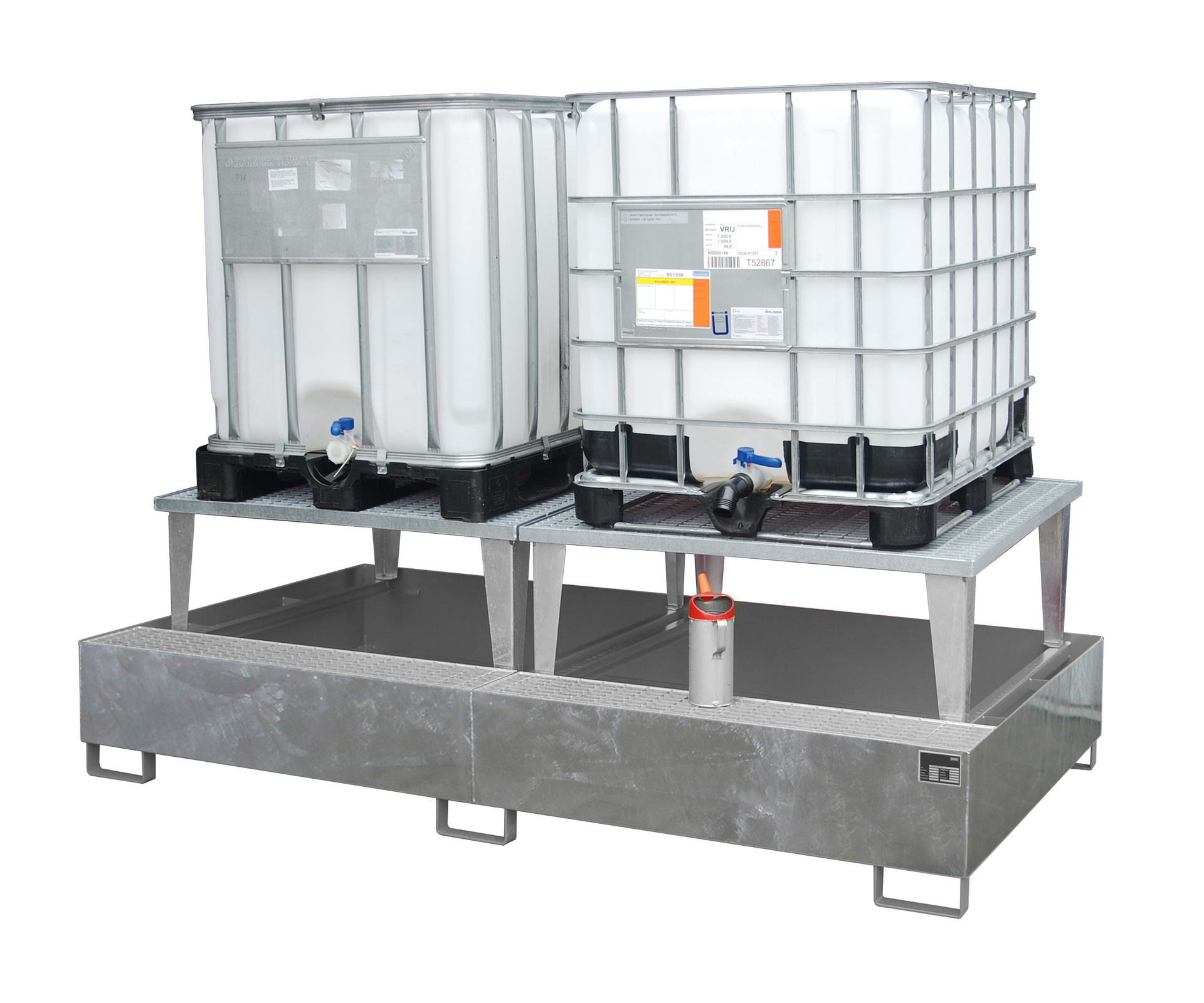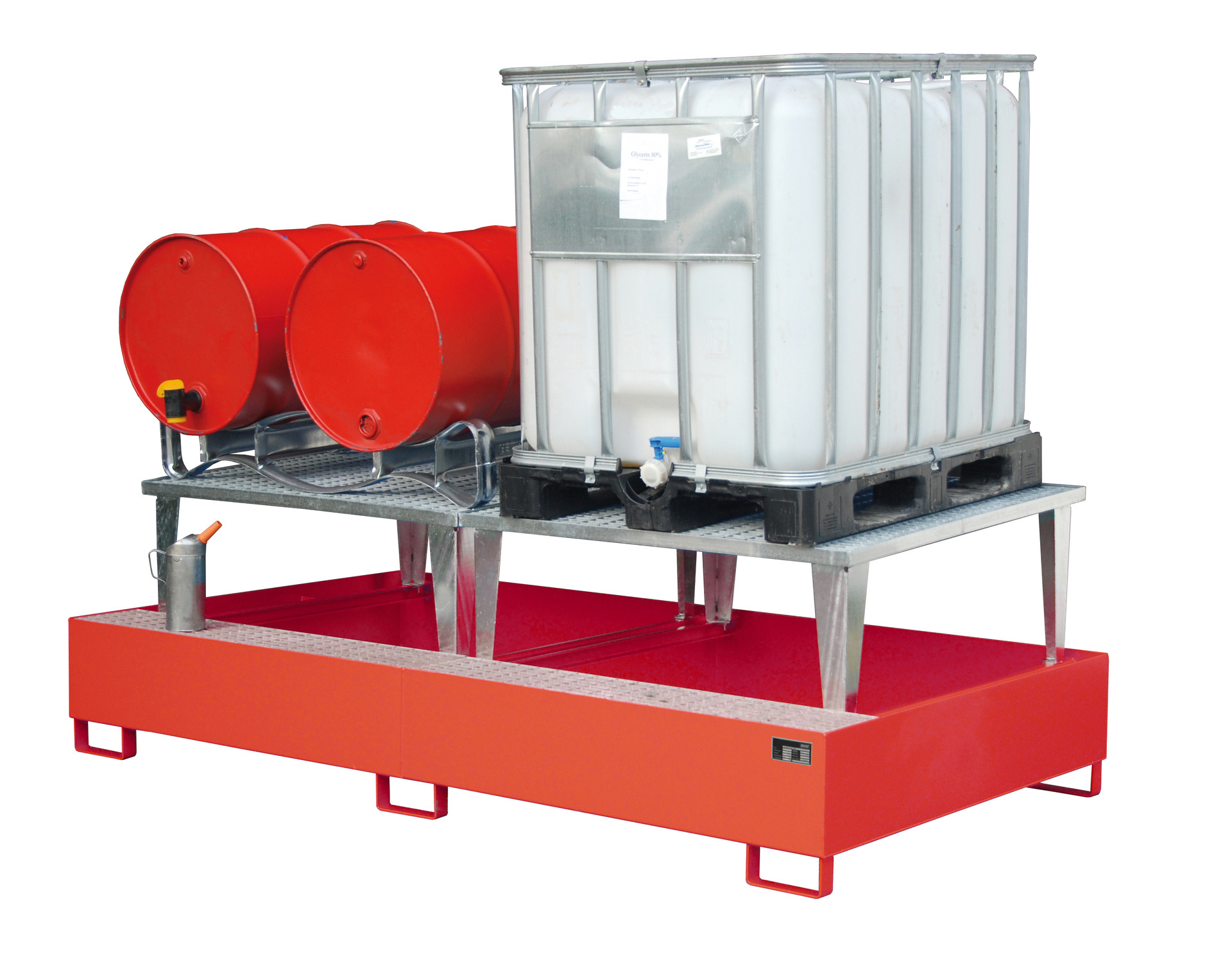 Opslag van IBC à 1000 liter, ook met vaten (60/200 liter) en kleine verpakkingen combineerbaar