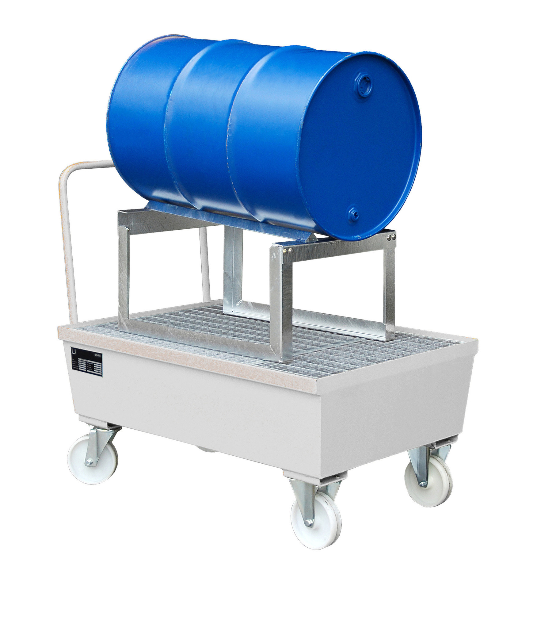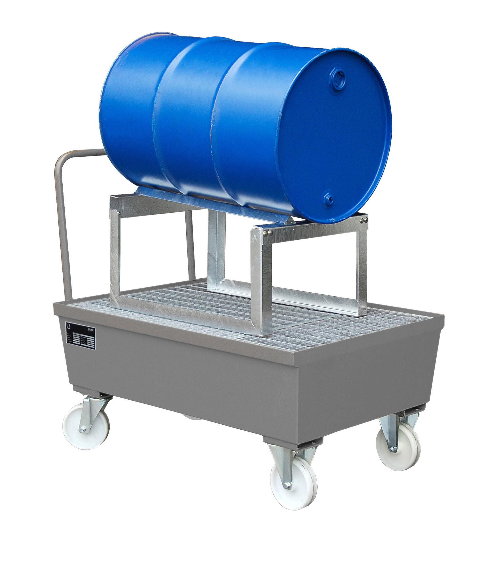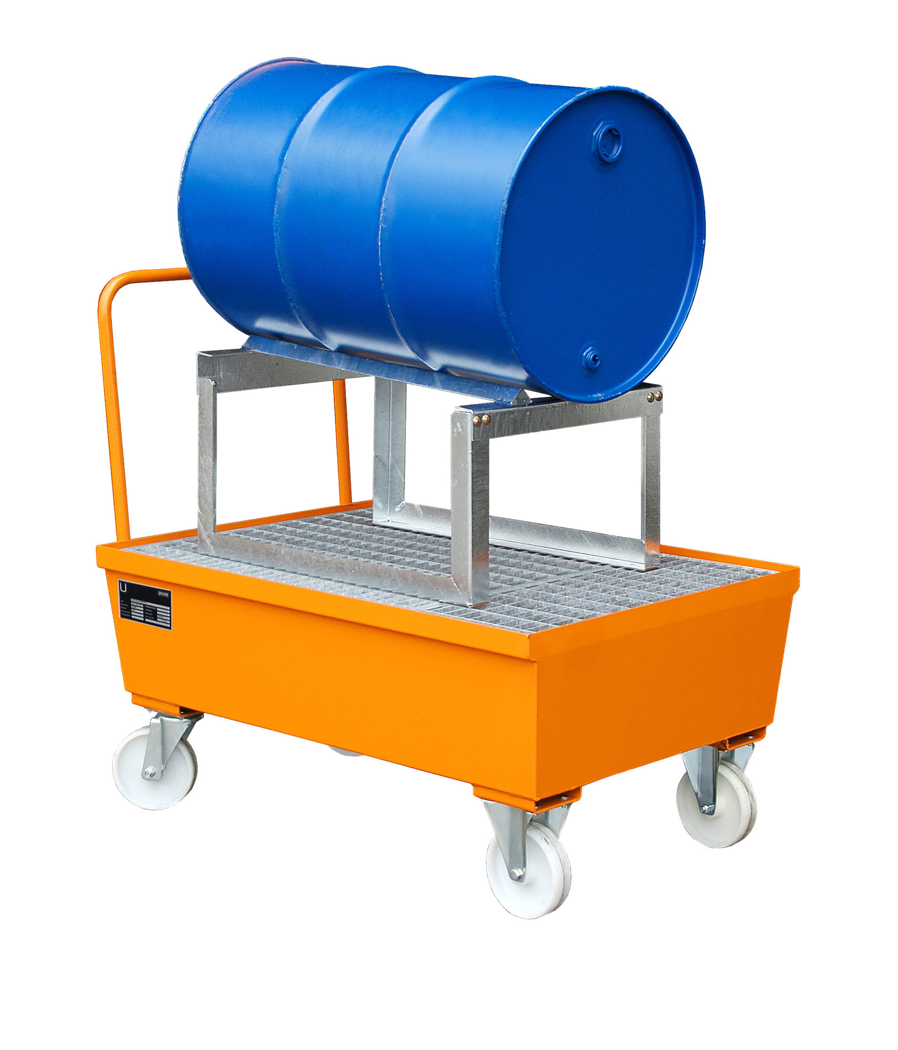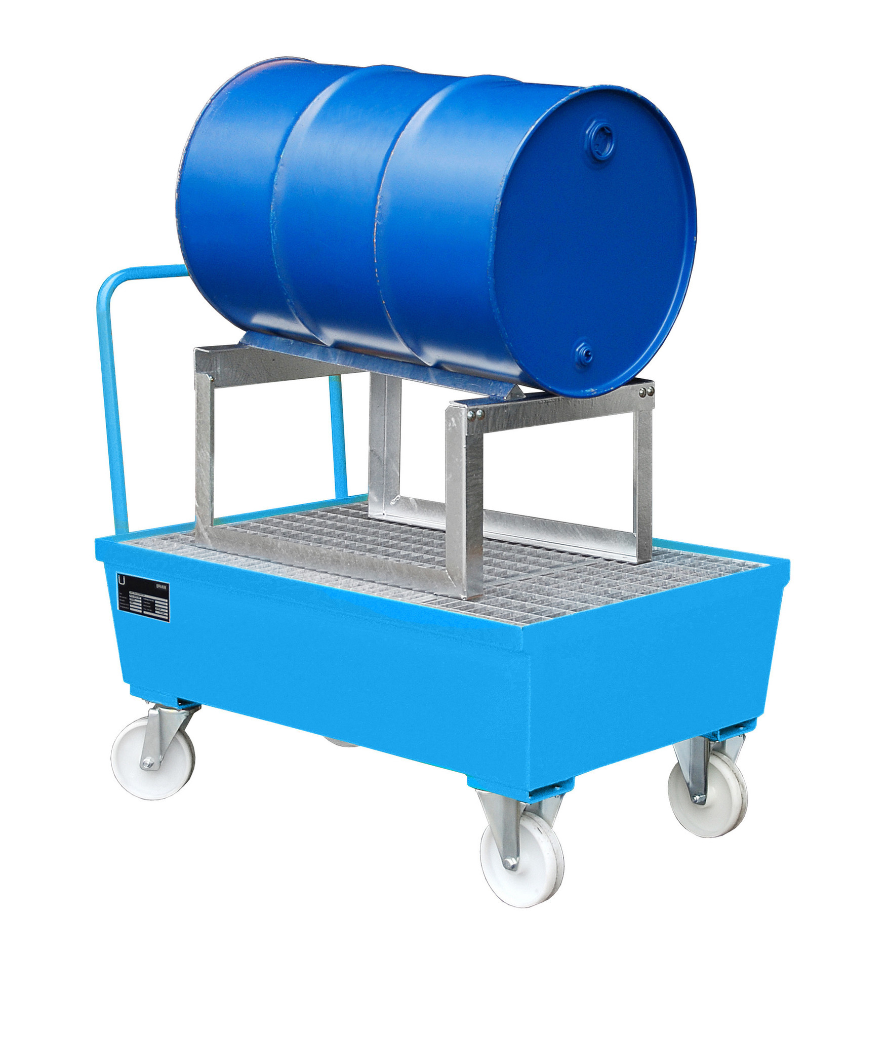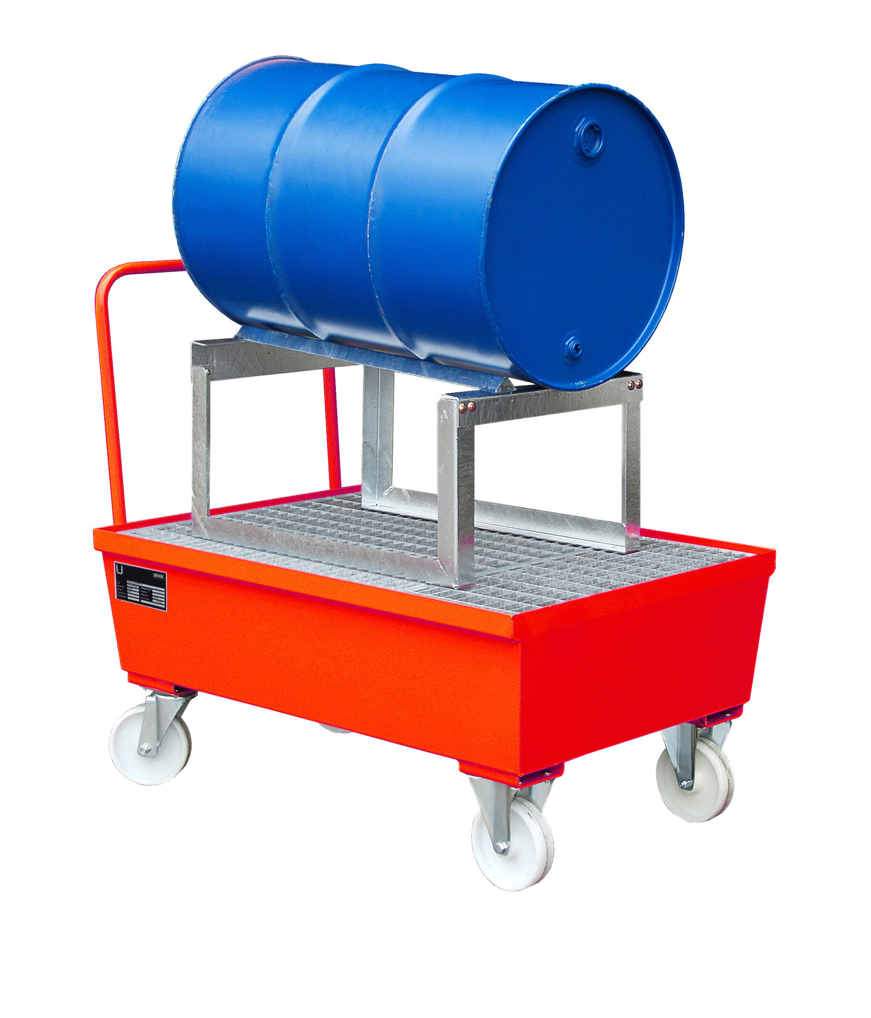 - 2 zwenk- en 2 draagwielen van poliamide Ø 180 mm, waarvan één zwenkwiel met vergrendeling – bouwhoogte 220 mm