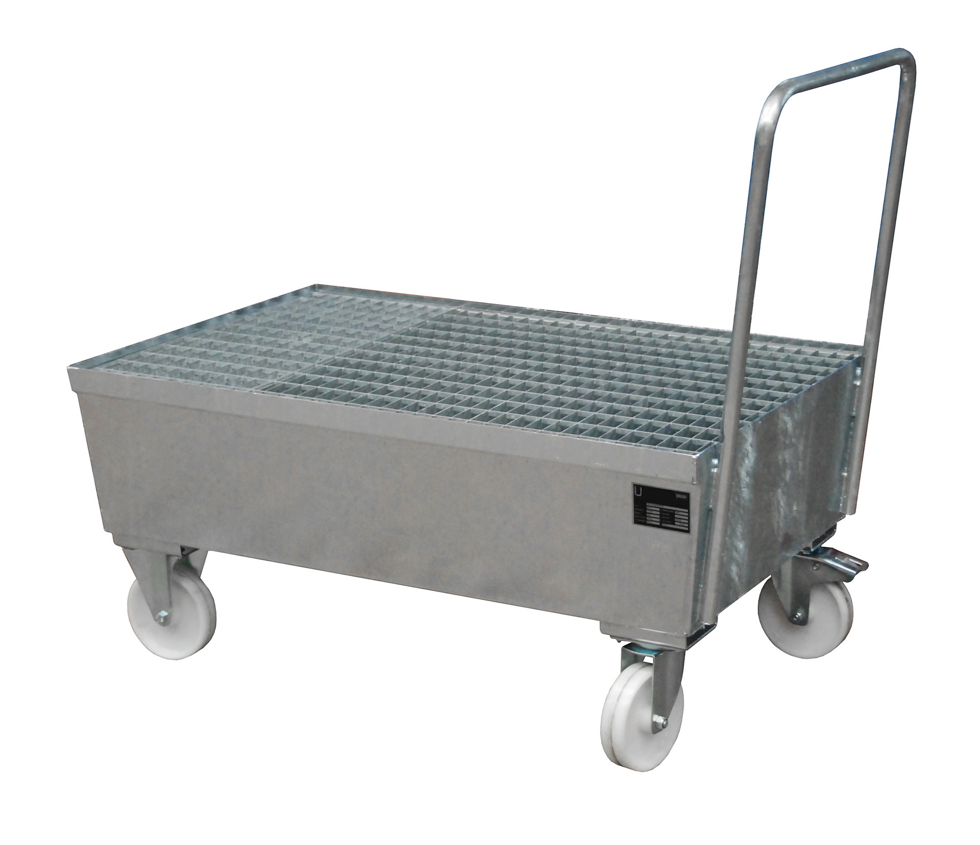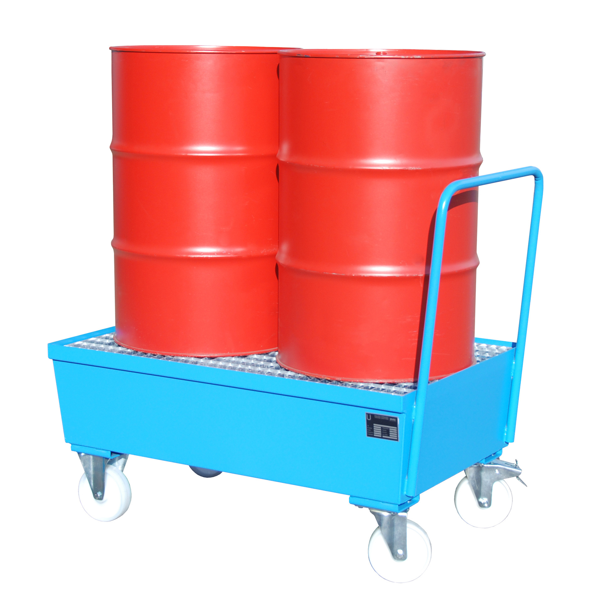 - 2 zwenk- en 2 draagwielen van poliamide Ø 180 mm, waarvan één zwenkwiel met vergrendeling – bouwhoogte 220 mm